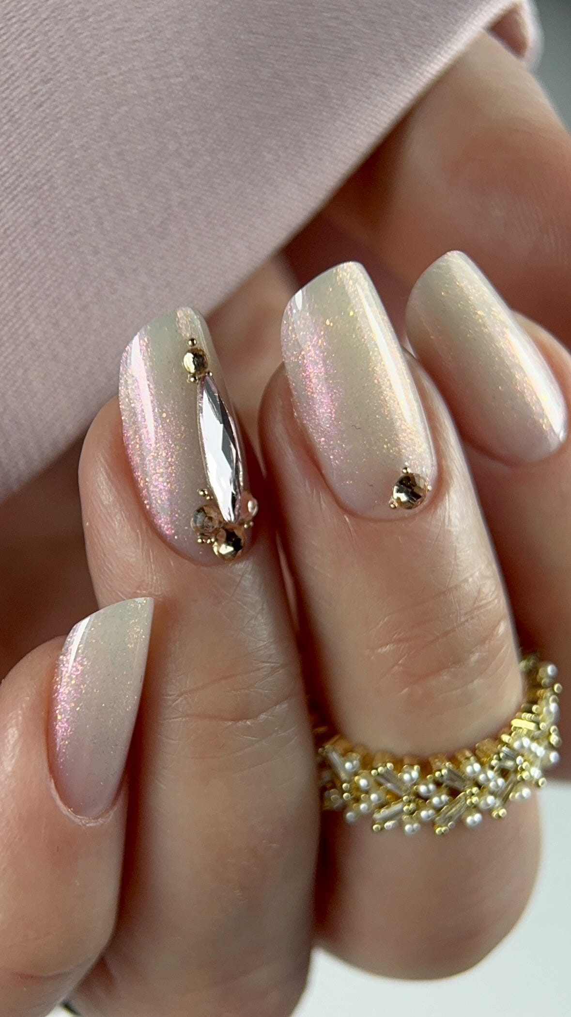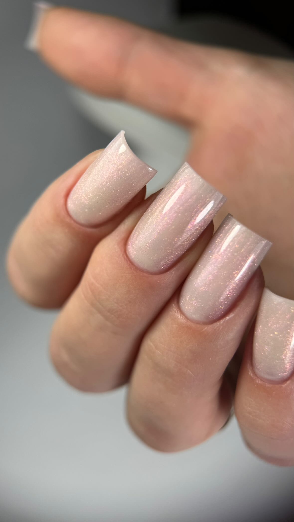 To półtransparentny, mleczny brzoskwiniowo-różowy kolor z lekkim efektem glow. Wyrównuje koloryt płytki, rozświetla dłonie i nadaje im zdrowy wygląd. Świetnie sprawdza się jako: