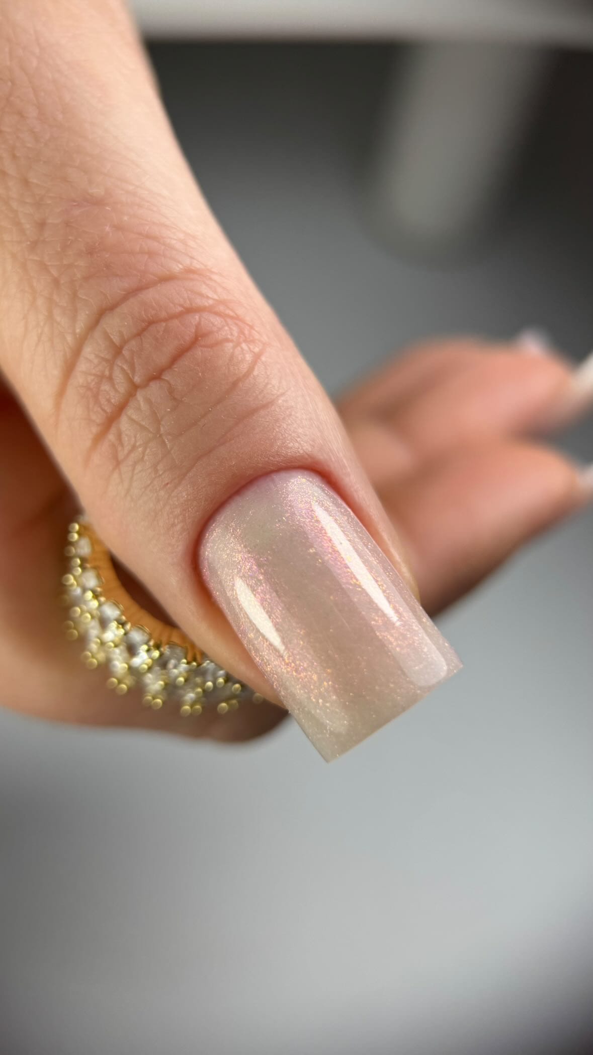 Zakończ topem lub pozostaw żel jako naturalny, rozświetlony kolor konstrukcyjny.
